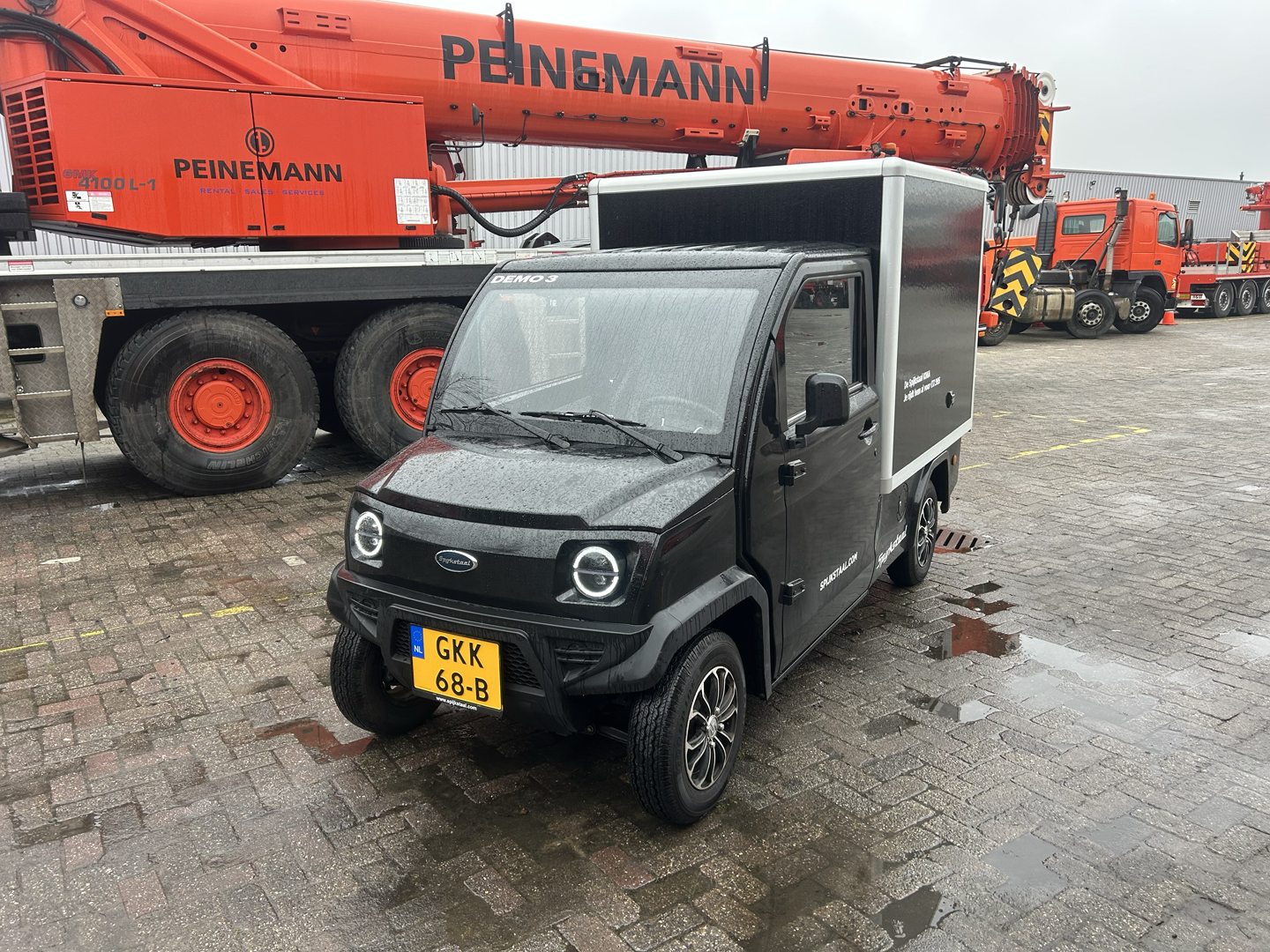 Gebruikte bestelbus met gesloten laadbak en dekzeil.